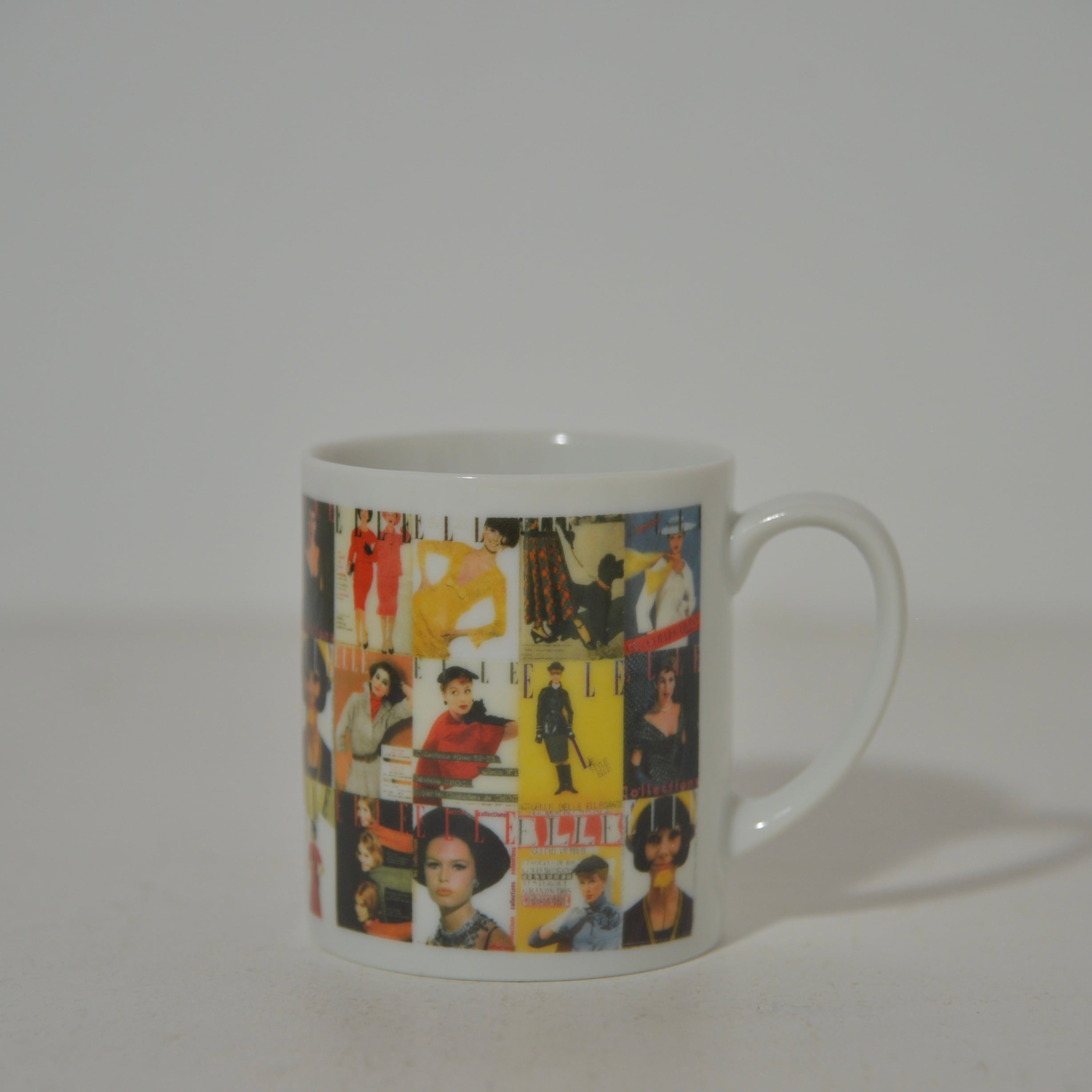 フランスで創刊されたファッション雑誌『ELLE(エル)』の表紙デザインがコラージュされたマグカップです。さまざまな年代のELLEの表紙がプリントされており、ファッションや時代の移り変わりを感じさせるデザインとなっています。