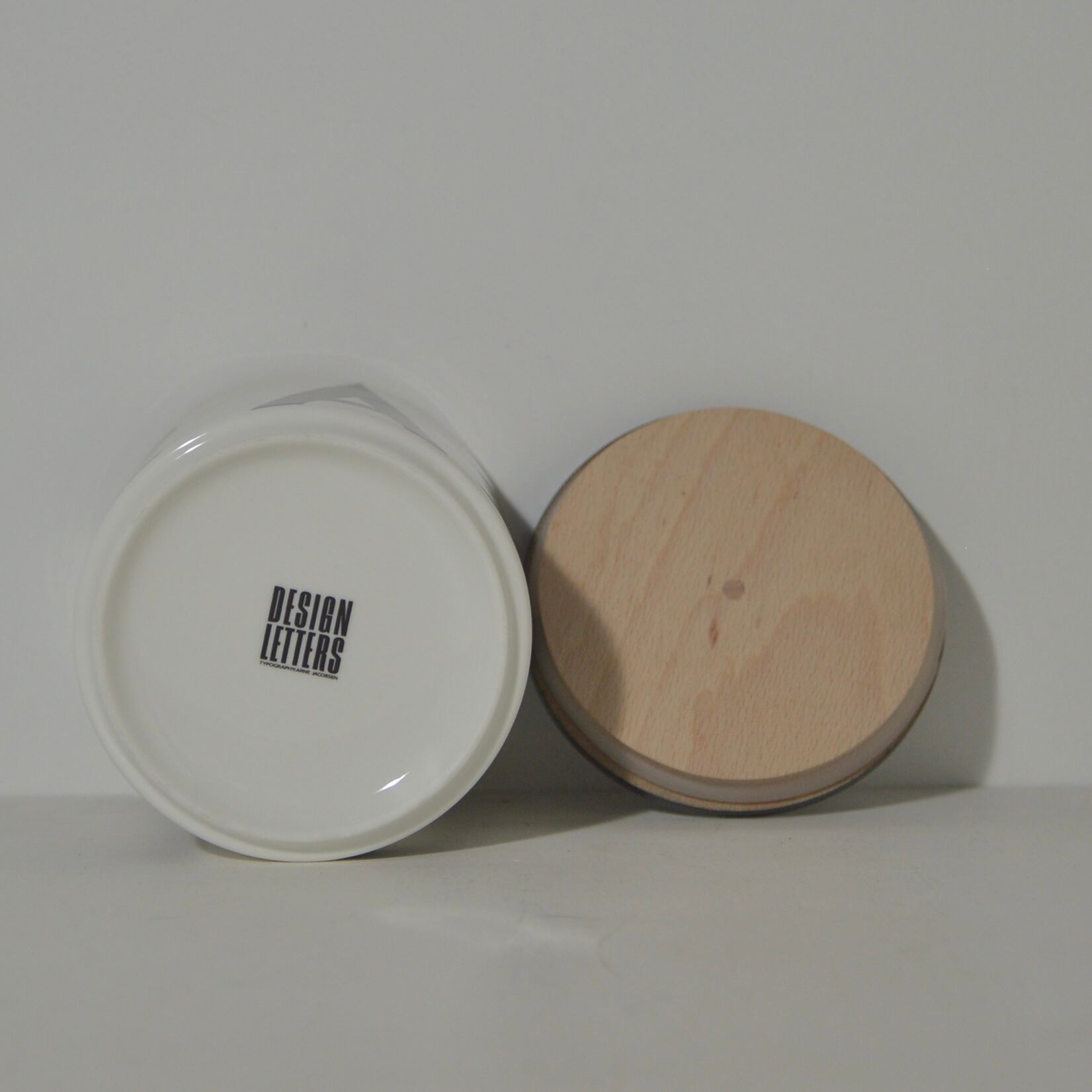 デンマークのブランド、DESIGN LETTERS の磁器製収納ジャーです。デンマークの建築家、Arne Jacobsenさんの手掛けたタイポグラフィをプリントしてます。アルファベットの美しさが際立つシンプルなデザインです。