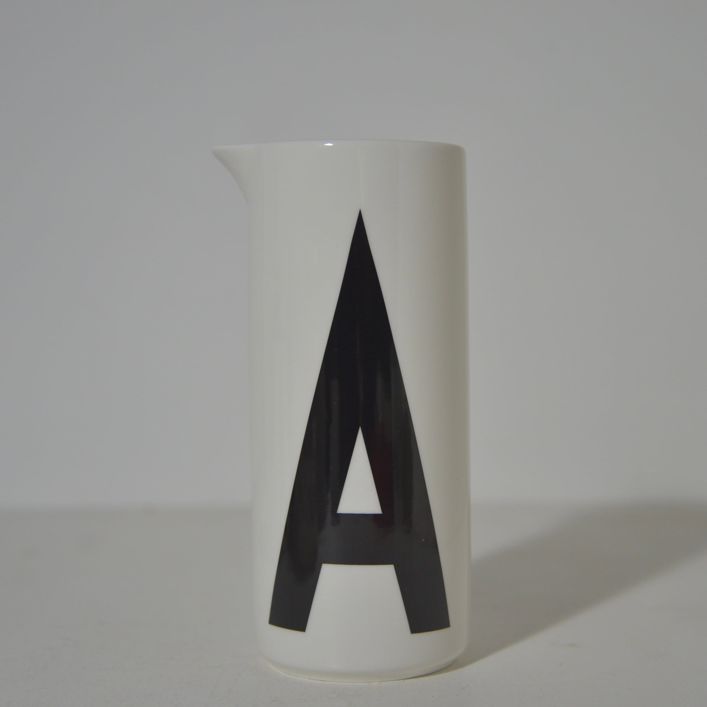 デンマークのブランド、DESIGN LETTERS の磁器製ウォーターピッチャーです。デンマークの建築家、Arne Jacobsenさんの手掛けたタイポグラフィをプリントしてます。アルファベットの美しさが際立つシンプルなデザインです。