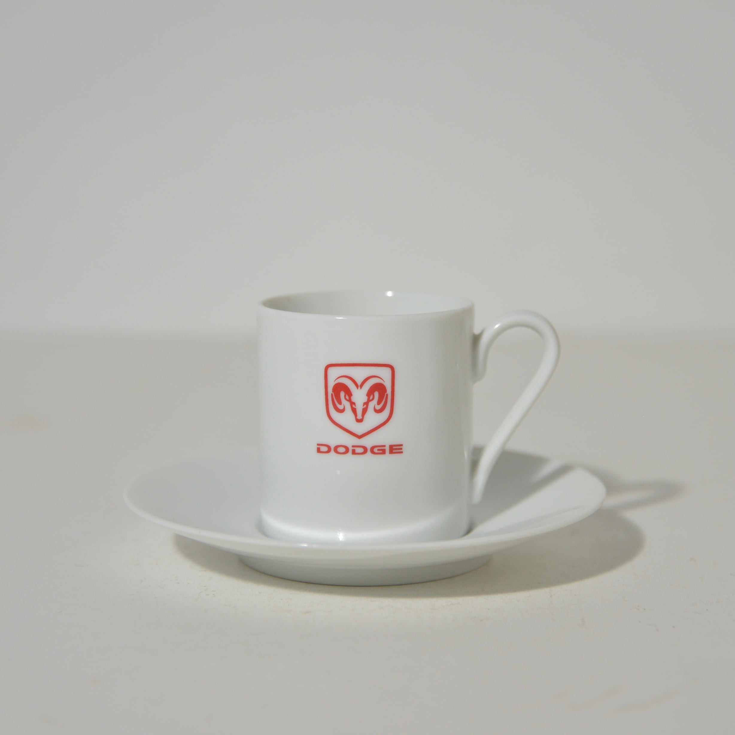 自動車ブランド、DODGEのロゴがプリントされたカップ&ソーサーです。