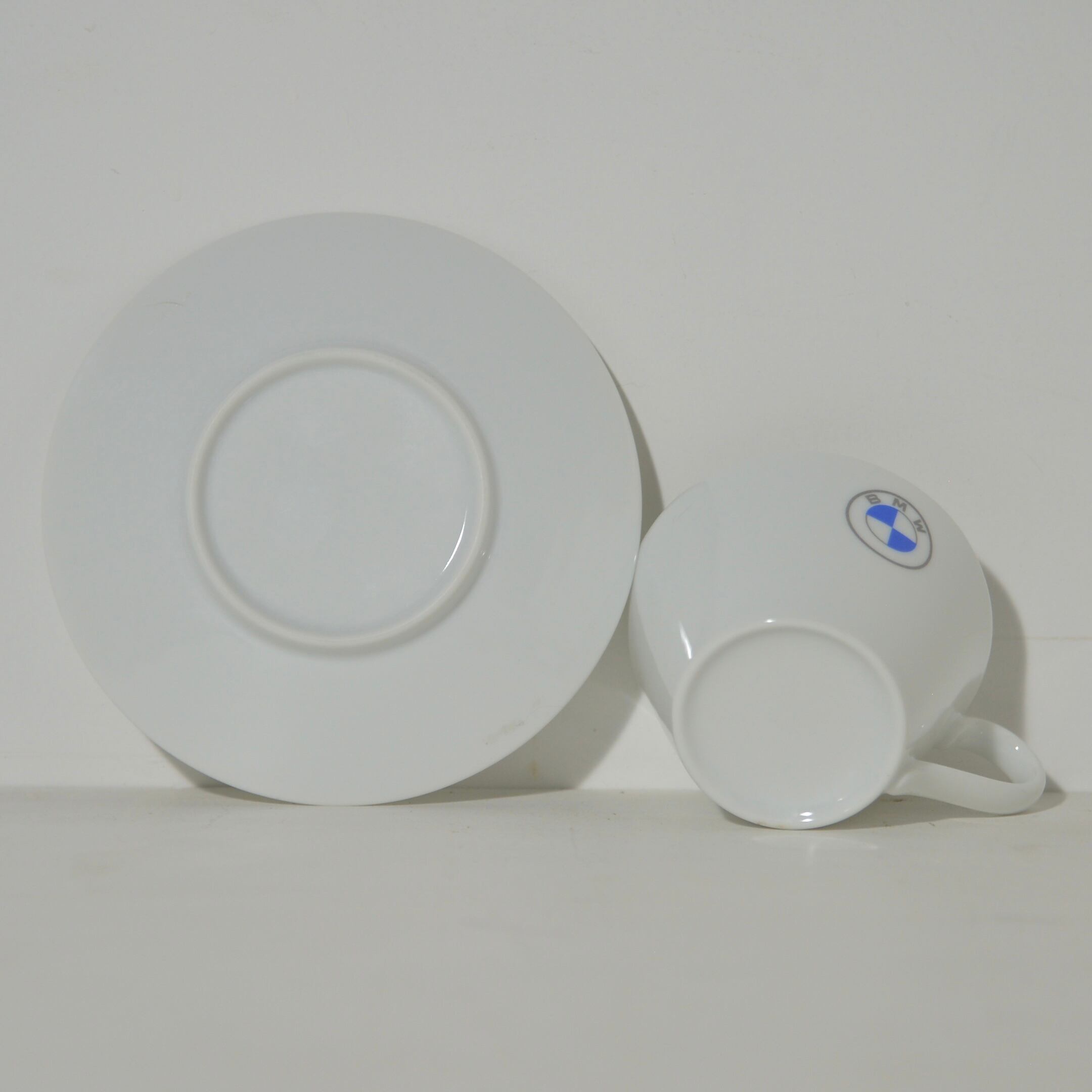 自動車ブランド、BMWのロゴがプリントされたカップ&ソーサーです。