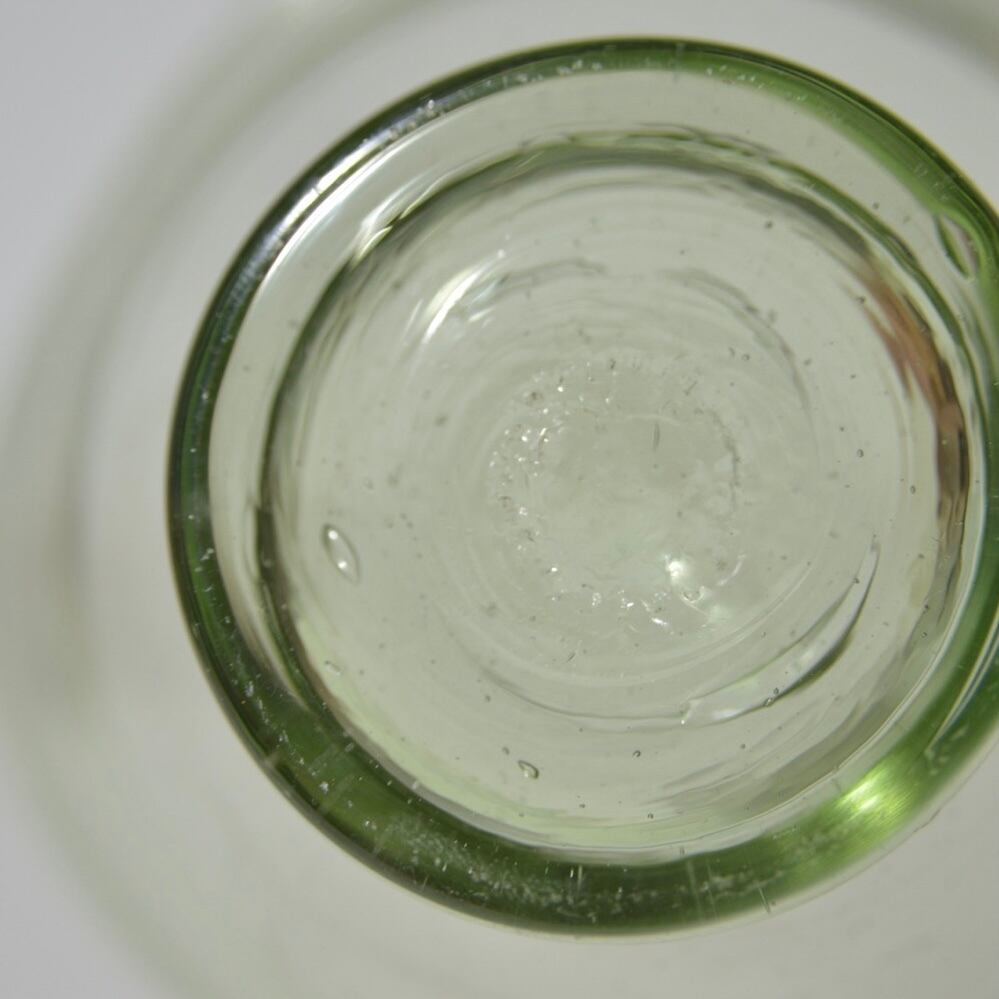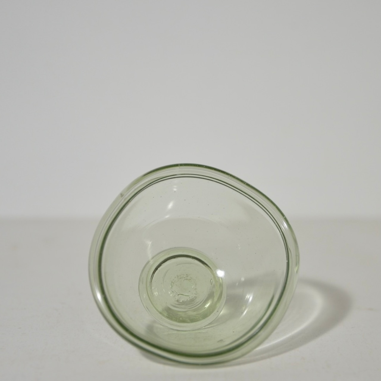 吹きガラスの小鉢です。製造元などの詳細不明です。ポンテ跡が、円形に点のカタチをしていて、船木倭帆さんのポンテマークに似てますが、サインはありません。