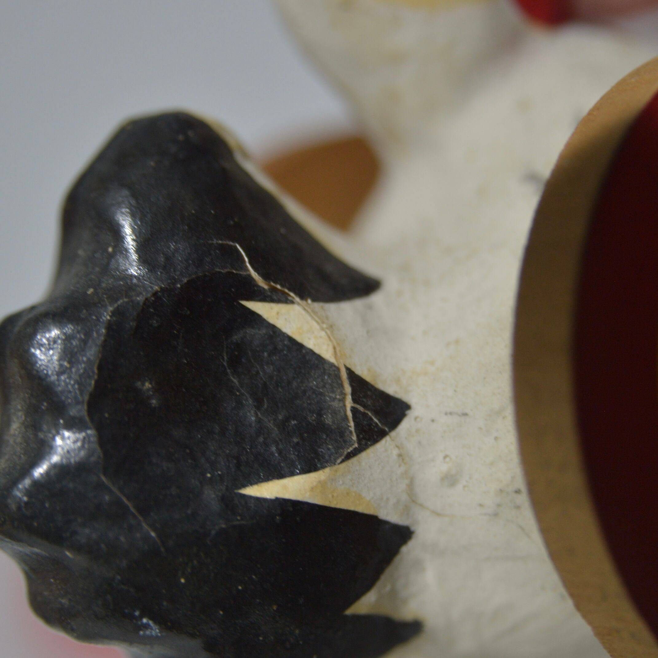 汚れや傷がございます。鶏の尾っぽに凹みと割れがあります。