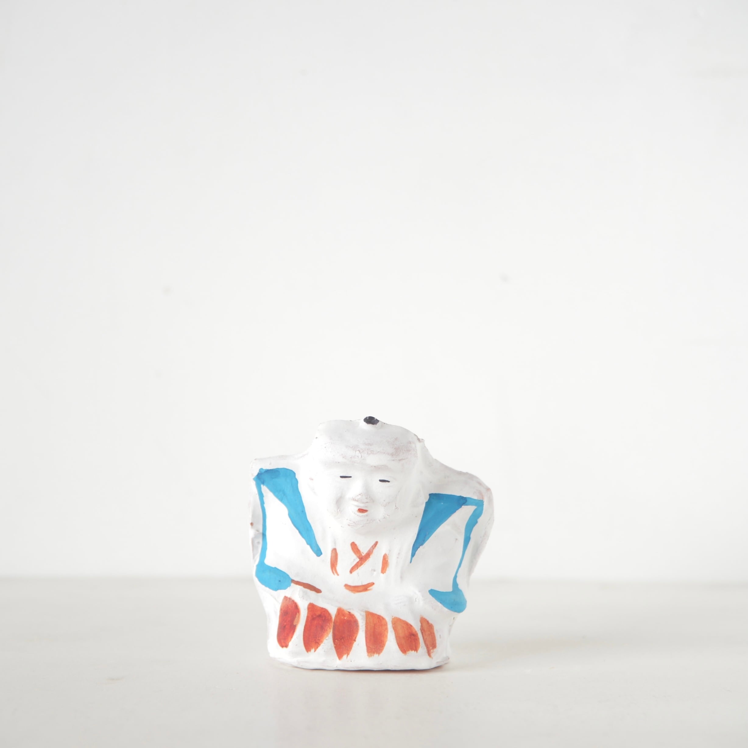 福岡県筑後市赤坂地区で作られた、焼き物の人形です。こちらは福助の形をしています。製造は明治15年創業の「赤坂飴本舗」店主の野口紘一さんで、野口家で赤坂人形作りが受け継がれ始めたのは、それ以前の江戸末期ごろからだそうです。かつては数軒の人形屋があったそうですが、現在は野口紘一さんただ1人だけ。赤坂人形は、筑後地方では「ててっぽっぽ(不器用な人)」という愛称で親しまれてきたそうです。